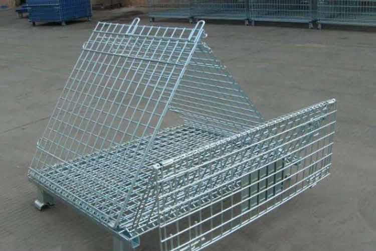 可折疊蝴蝶籠的主要原材料是高線拉成的鋼絲,一般絲徑是5mm,6mm,6.4mm。網(wǎng)片焊接的網(wǎng)目間距一般為50×100,100×100,50×50。折疊式倉(cāng)庫(kù)籠采用U型鋼焊接而成,U型鋼是冷軋帶鋼軋機(jī)軋制而成,底部四角采用沖壓件一次沖制而成。